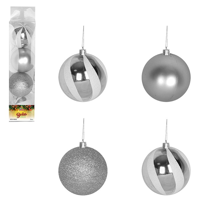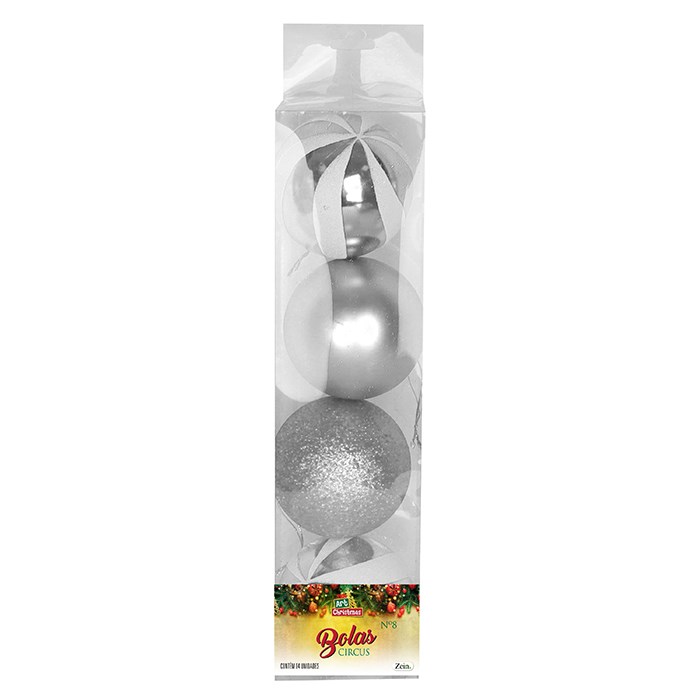 Bola tb circus 8cm 4pcs prata cx:024