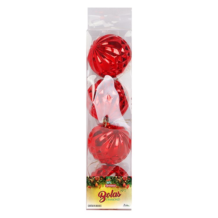 Bola tb diamond 7cm 4pcs vermelho cx:036