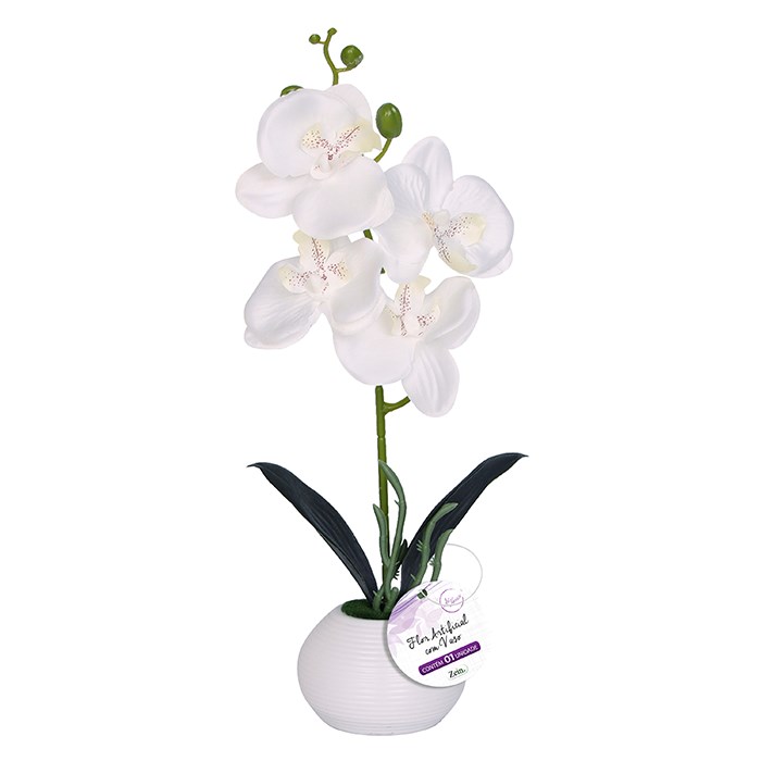 Flor artificial c/vaso plastico 32x8,5cm cx:024