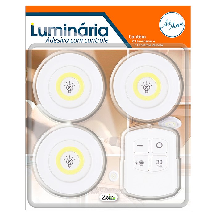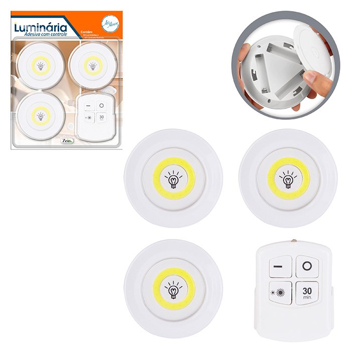 Luminaria led adesiva 3pcs com controle a bateria cx:024